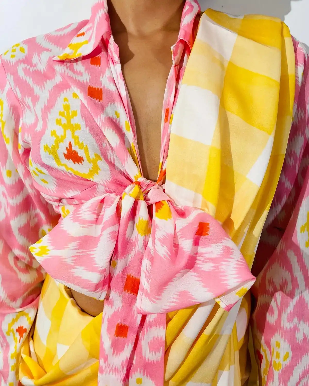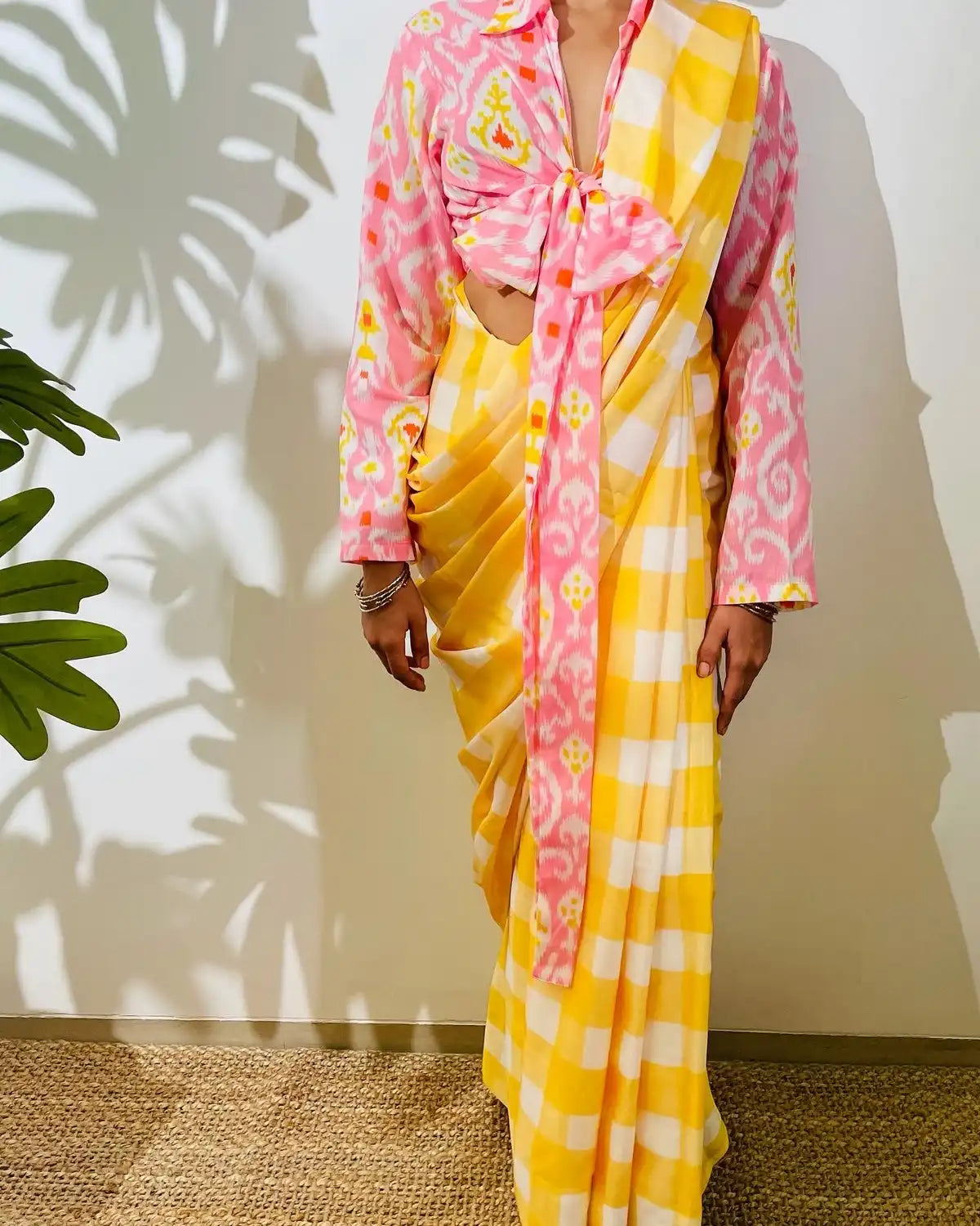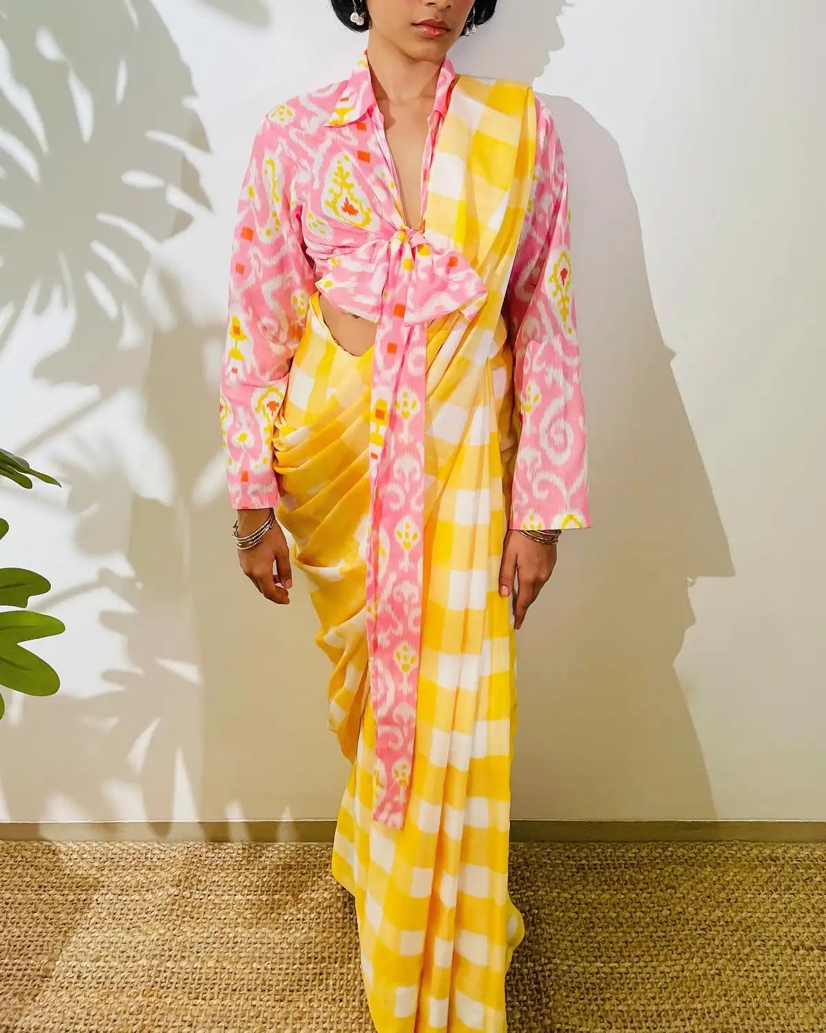 GHINGHAM SATIN SAREE IN YELLOW