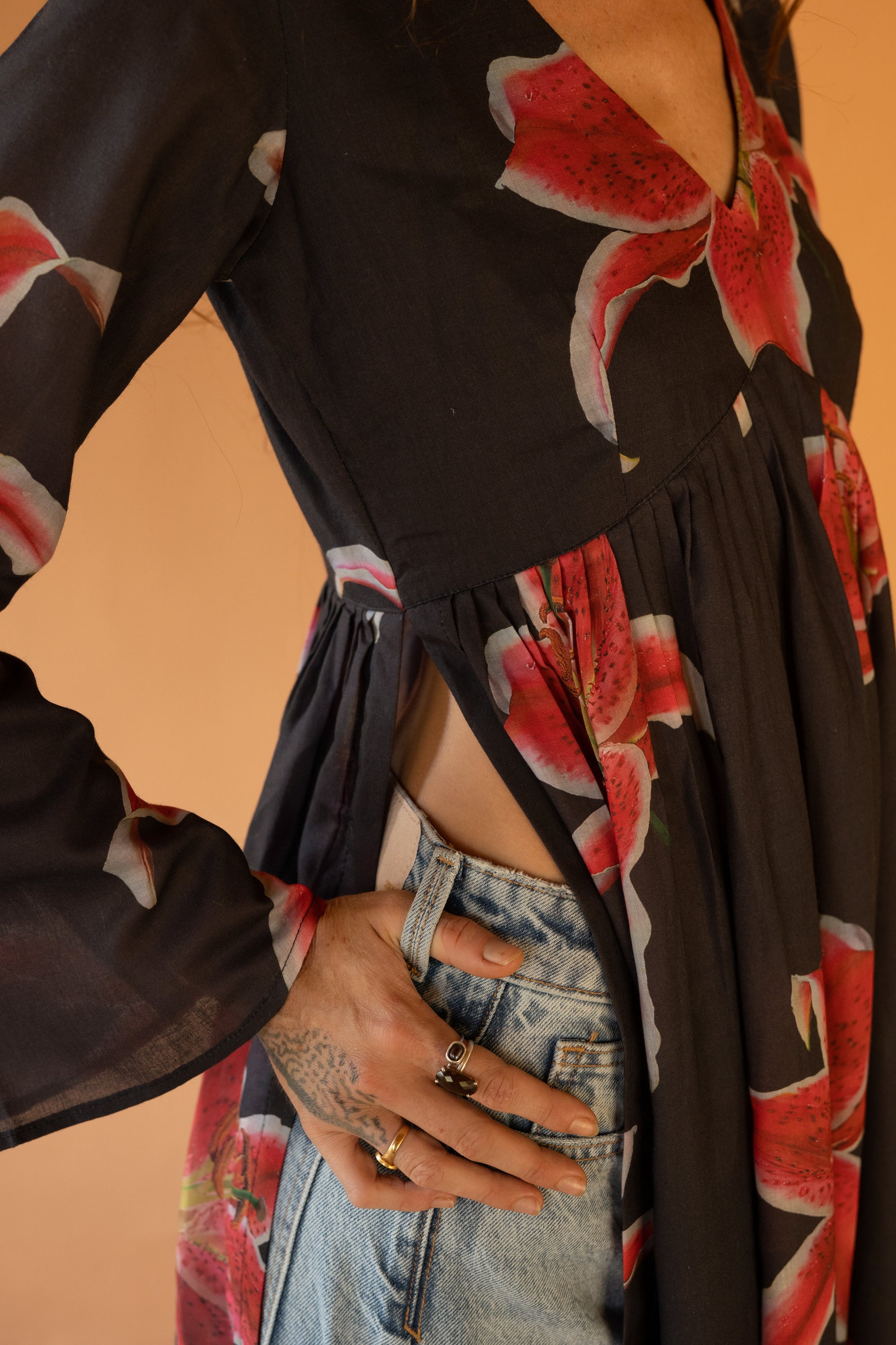 Hawaiian Hibiscus Tunic Slit Top