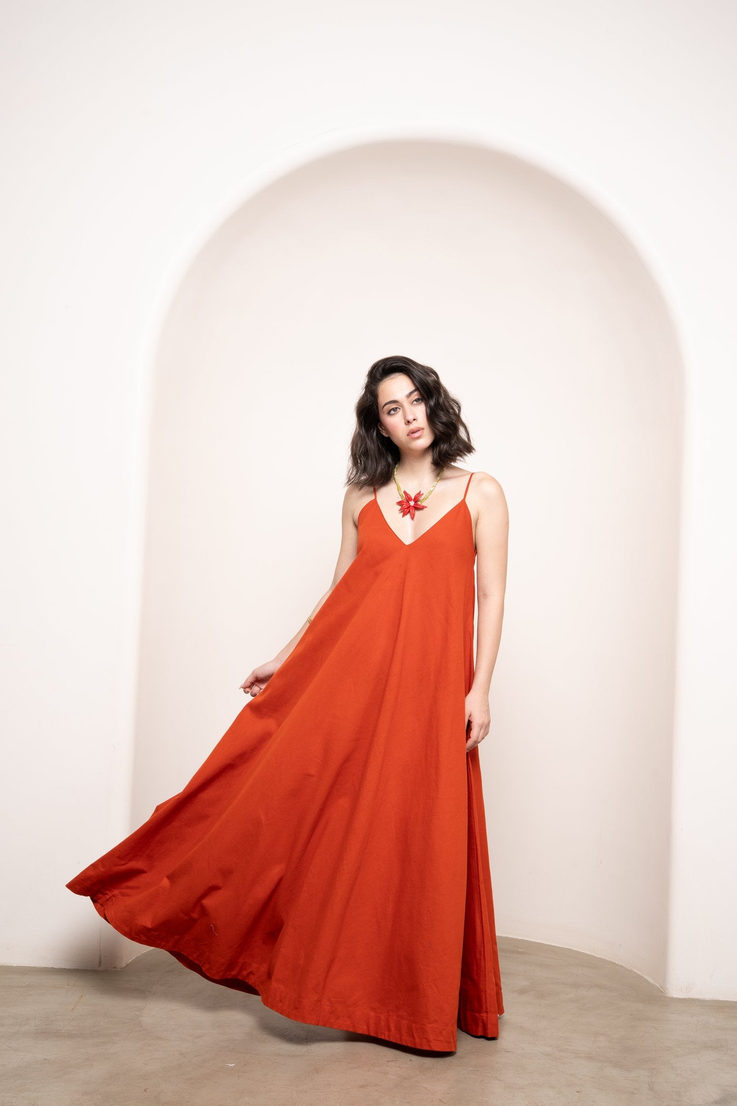 Meet the “Sol de Samba” Dress — your ultimate ode to freedom and movement. A super- flowing, floor-grazing silhouette that sways with every step, with an adjustable V neckline that flatters and teases just right. Inspired by the rhythm of samba, it’s the kind of dress that slips seamlessly from sunlit mornings to slow, moonlit nights. Made in two of our most gorgeous hues, each one made to turn heads.